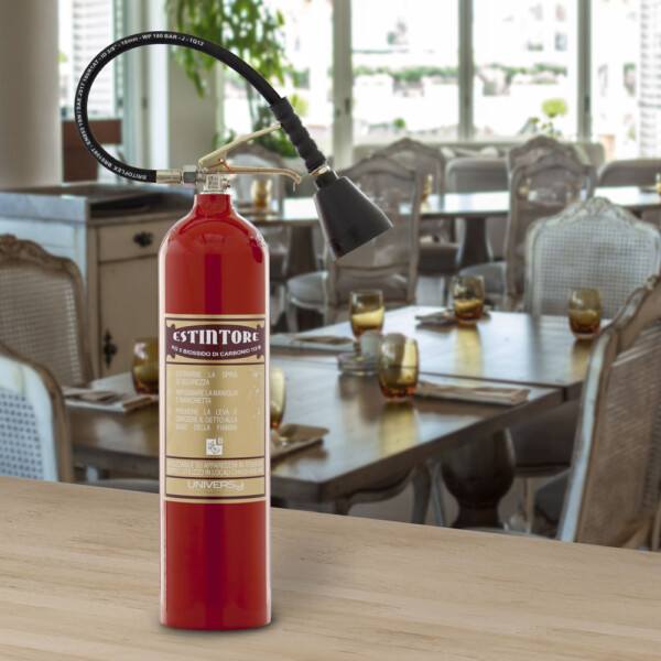 L’estintore a CO2 kg 5 “Linea Elegance” è il compagno ideale per proteggere te e il tuo ambiente dagli incendi. Realizzato con una bombola in alluminio e una valvola verniciata in ottone, questo estintore garantisce un prodotto di alta qualità che si distingue per lo stile elegante e tradizionale conferito dall’etichetta dorata. La sabbiatura e verniciatura a polveri di poliestere per esterni assicurano una resistenza alla nebbia salina per 1.000 ore. Corredato di dichiarazione di conformità e certificazione PPG (prodotto di provenienza garantita) categoria B e con classe di fuoco 113B.