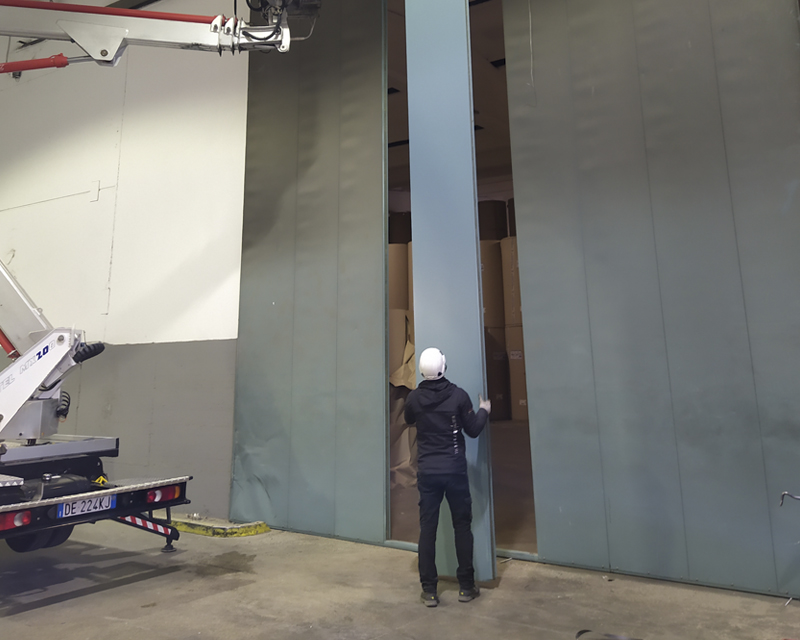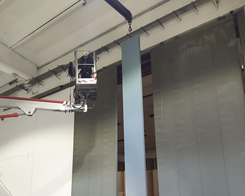 Il nostro intervento ha previsto la sostituzione della membrana di separazione acqua/schiuma dalla botola superiore del silos schiuma a seguito del totale svuotamento del liquido schiumogeno interno al serbatoio stesso. Successivamente abbiamo ripristinato la nuova membrana attraverso delle torrette d’ingresso costruite sul posto.
