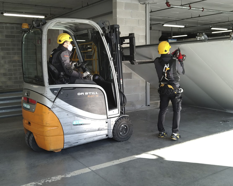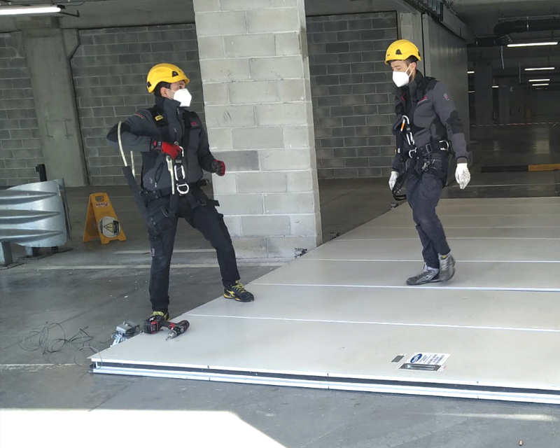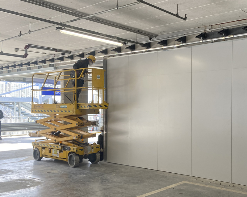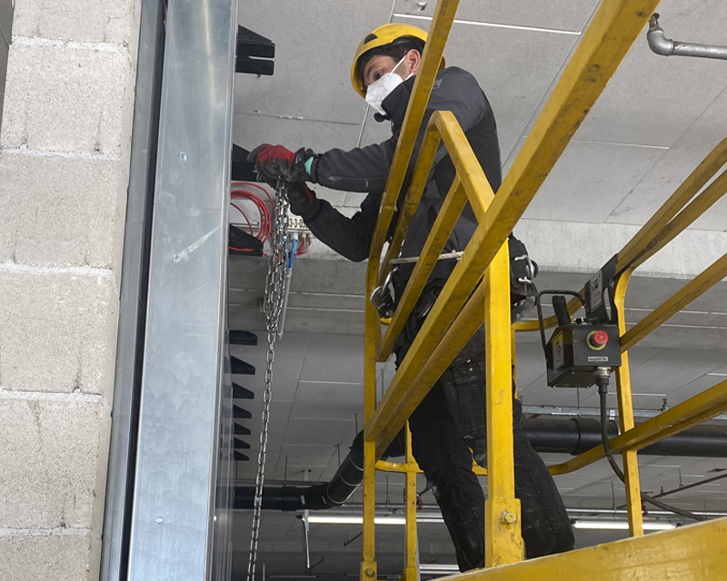Il committente ha richiesto la sostituzione di un portone REI120 con un nuovo portone telescopico a due ante EI2120 di dimensioni 12,6m di larghezza per 3,45m di altezza. Il nostro team di tecnici esperti è riuscito a risolvere le difficoltà riscontrate nella fase di montaggio, l’installazione era infatti delicata viste le grandi dimensioni del portone e la nuova tecnologia di movimentazione richiesta.